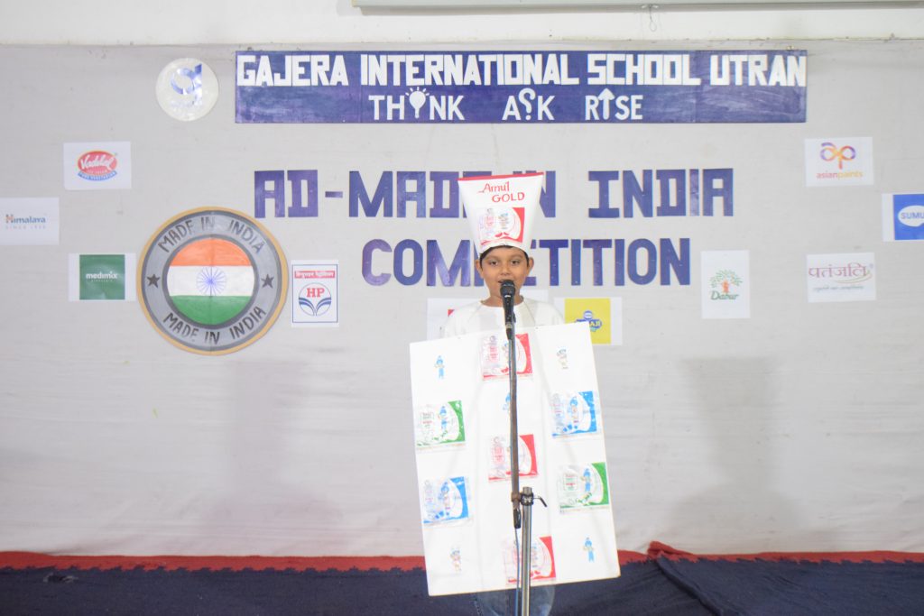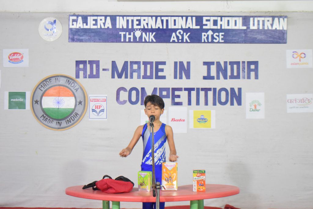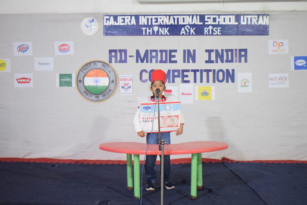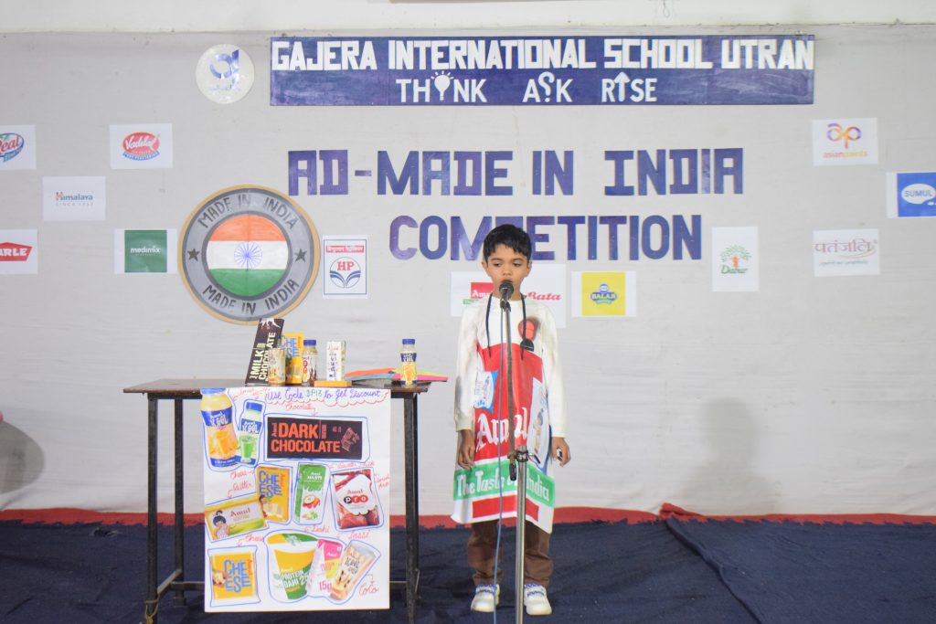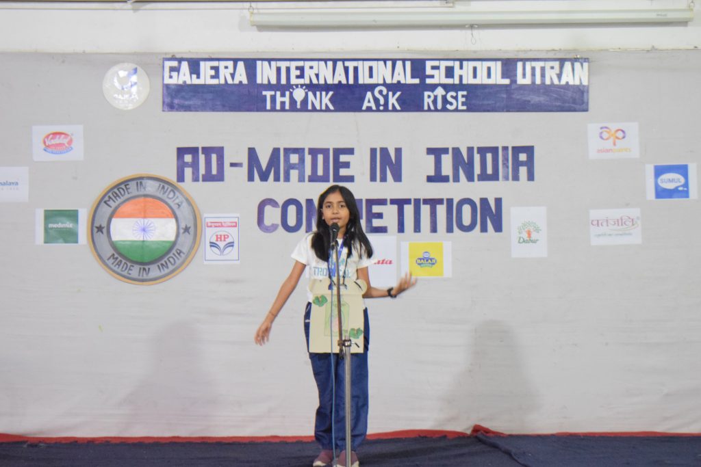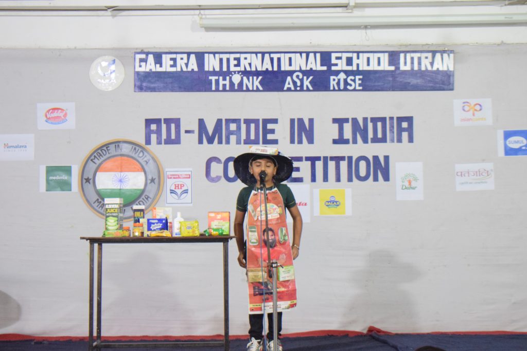 Dressed as various Indian brands and items—from traditional handicrafts to modern-day essentials—our young advertisers stole the show with their vibrant costumes and imaginative ideas. Each participant confidently took the stage to promote their chosen product through a 2-minute advertisement, highlighting what makes it special and uniquely Indian.