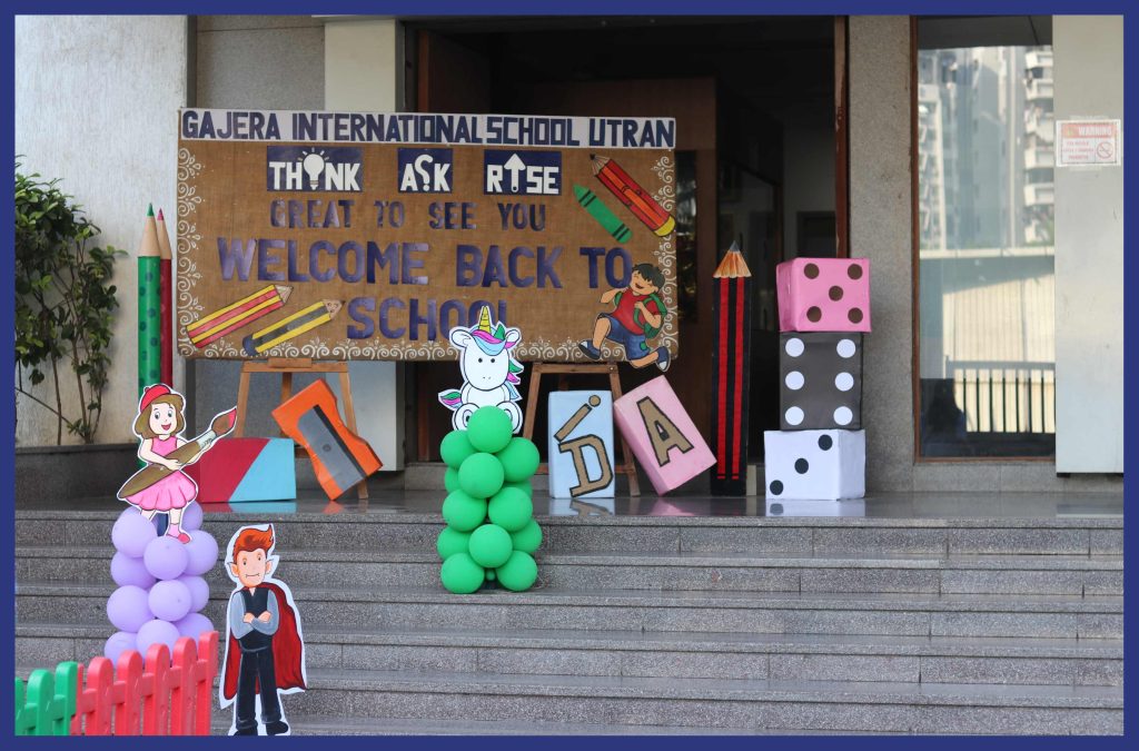 Tradition in Rhythm: Celebrating Navratri Together Gajera International School echoed with the spirit of festivity as we celebrated Navratri with great enthusiasm and devotion on 27th September 2025. The day began on an auspicious note with the Aarti of Maa Durga, where teachers and students joined together in prayer, seeking the divine blessings of strength,