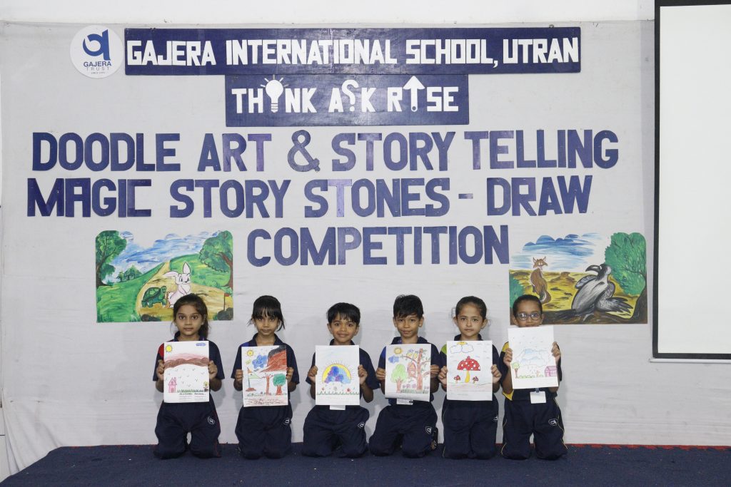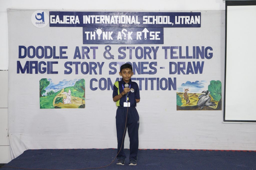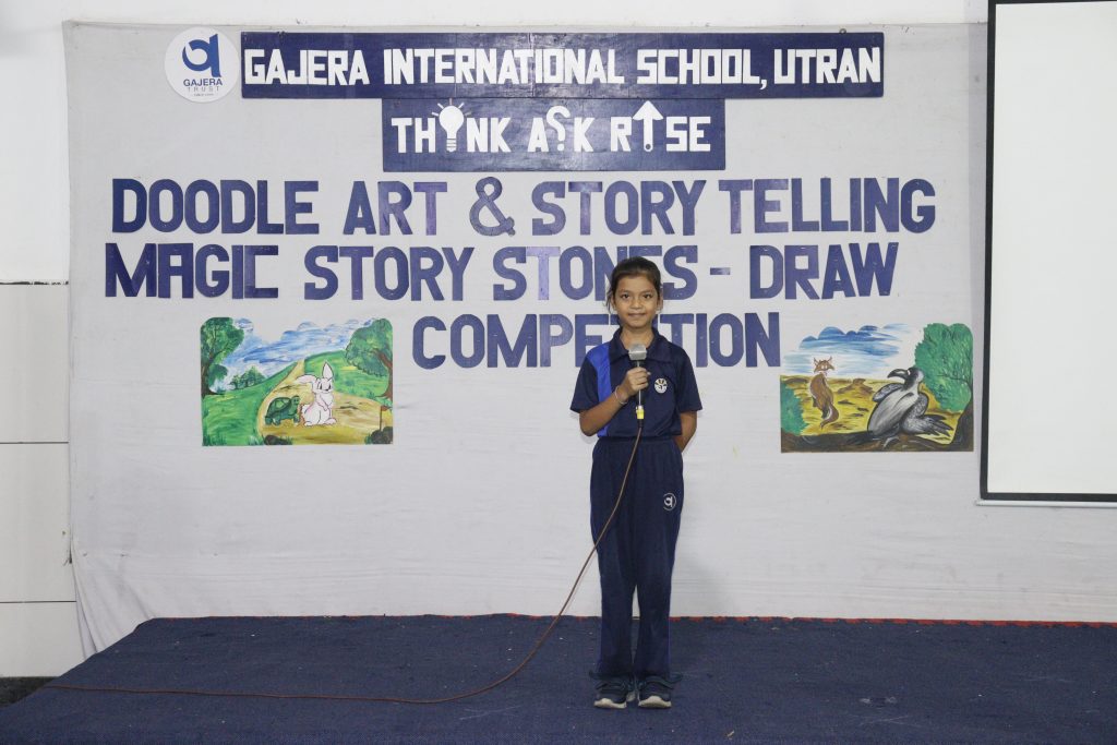 For students in Grades 1 and 2, the “Doodle Art and Storytelling Competition” provided an opportunity to unleash their creativity through art and narrative. This competition encouraged young learners to think imaginatively and develop their storytelling abilities. Meanwhile, Grades 3 and 4 participated in the “Magic Story Stones-Draw and Storytelling Competition,” which combined artistic expression with narrative skills, allowing students to bring their stories to life.