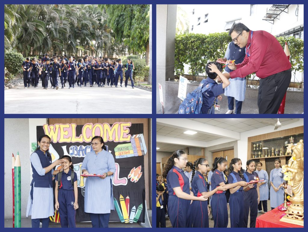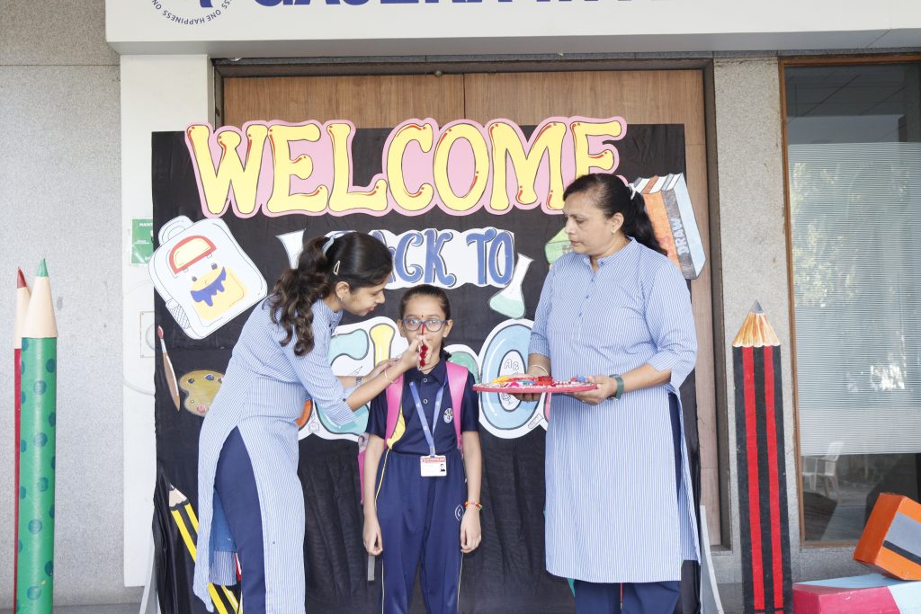 To make the first day truly auspicious, a traditional welcome ceremony was organized. Students were greeted with a tilak ceremony, symbolizing blessings, respect, and a positive start to their academic journey. The presence of spiritual values added a meaningful touch to the reopening of the school.