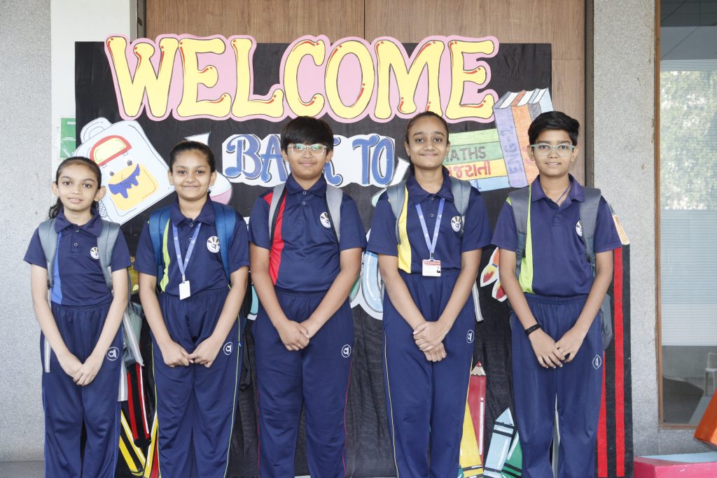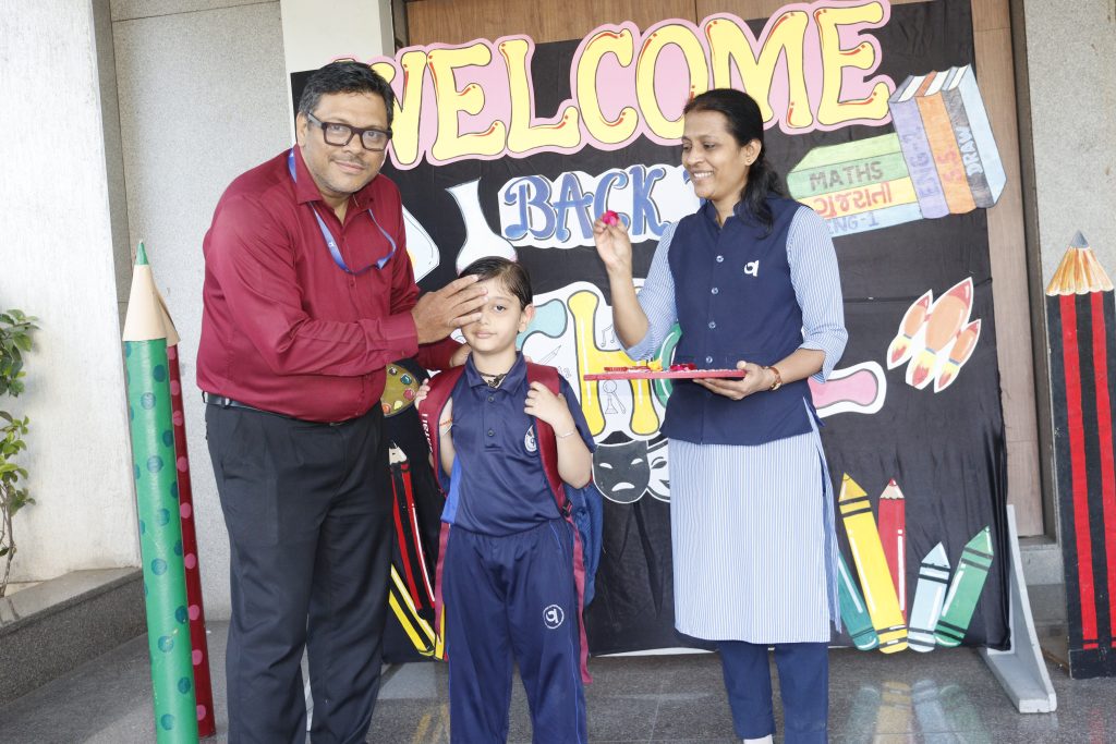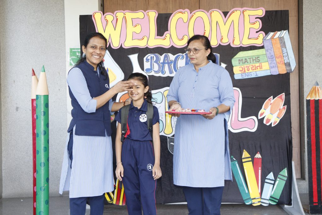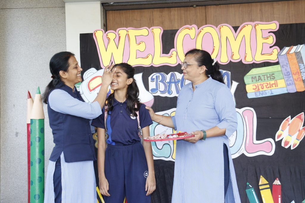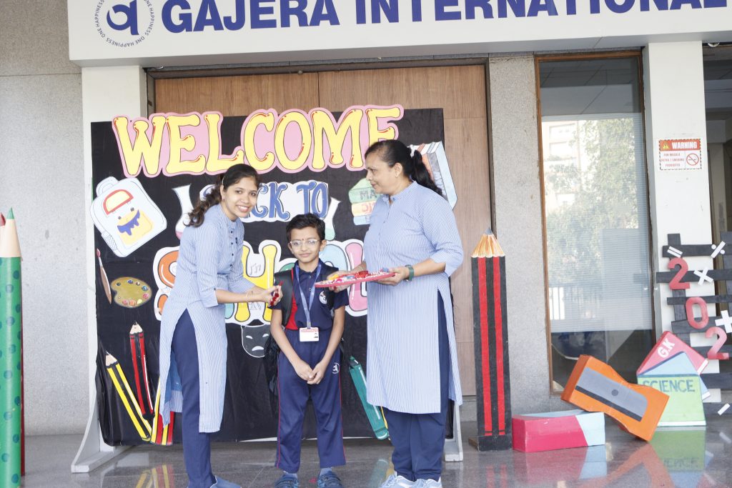 The opening day of the new academic session at Gajera International School was marked with devotion, positivity, and a vibrant cultural spirit. The school campus welcomed students with a beautifully decorated entrance, creating a warm and festive atmosphere that reflected joy and new beginnings.