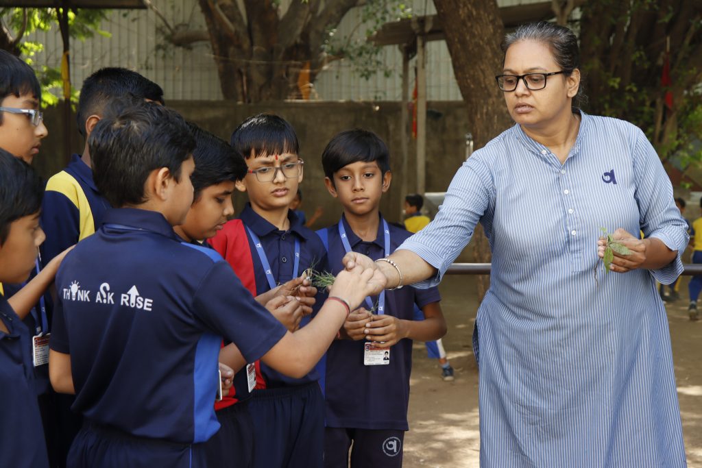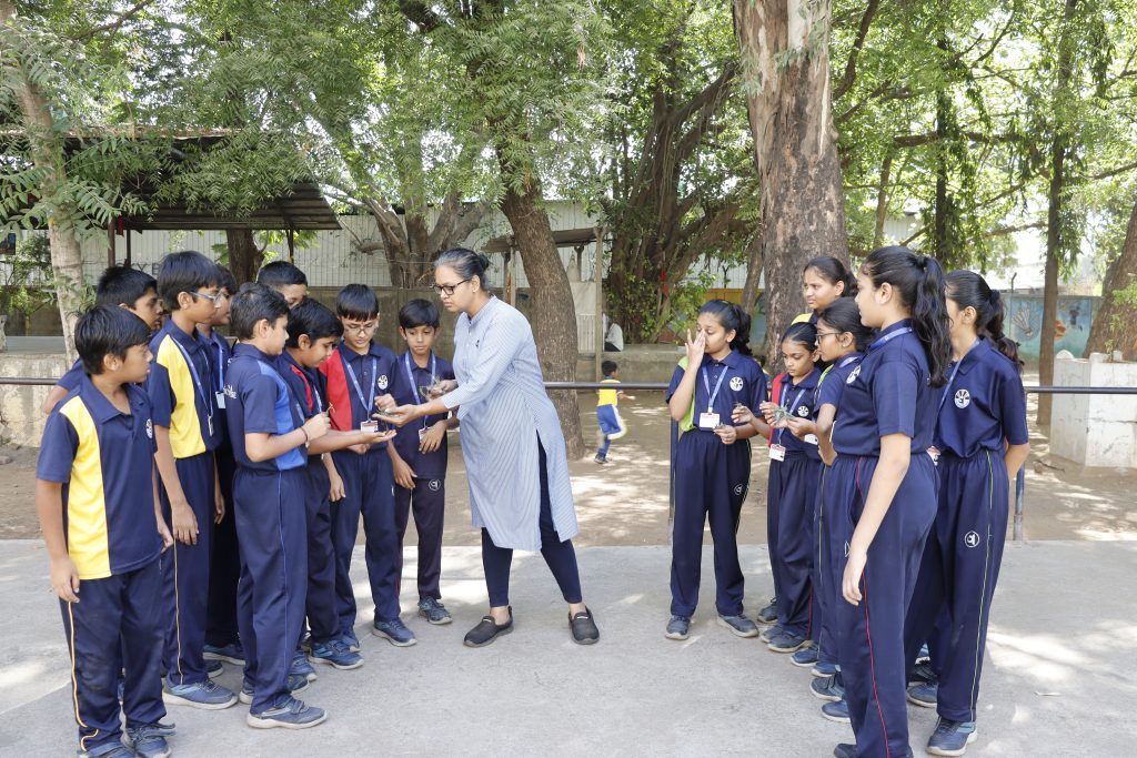 The celebrations continued outdoors with a set of fun, hands-on activities. Students explored the school grounds in an “eco-trail” challenge—identifying trees and pledging small green actions for the year. Alongside, math stations turned the campus into a living puzzle. Laughter and teamwork spilled across the field as children connected numbers and nature to real life—and they clearly enjoyed every minute.
