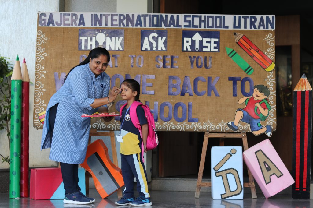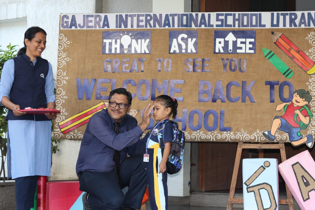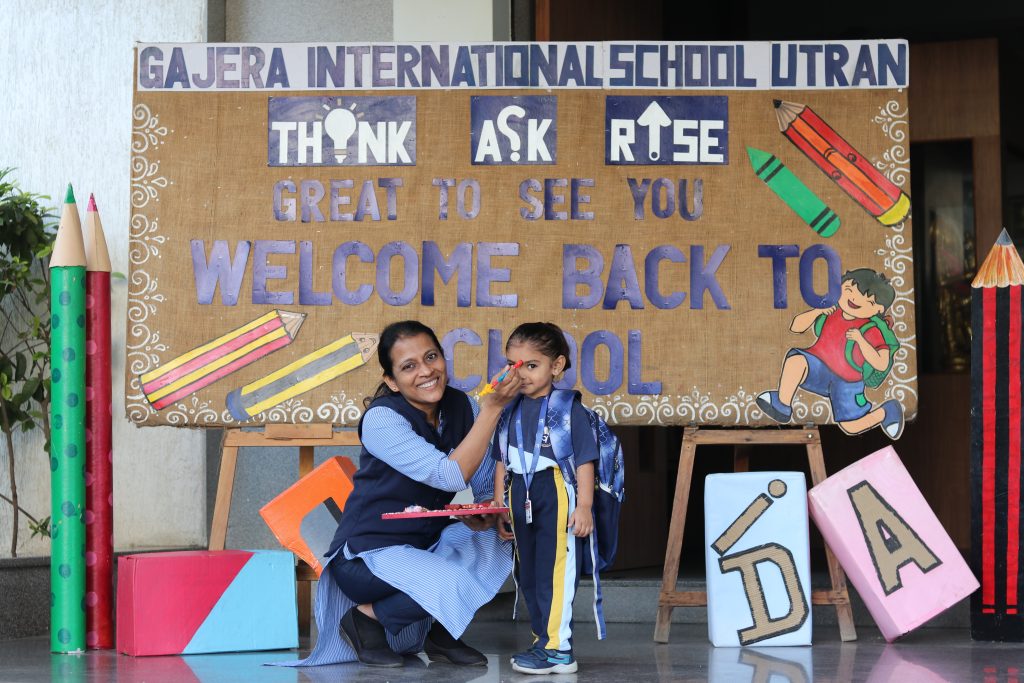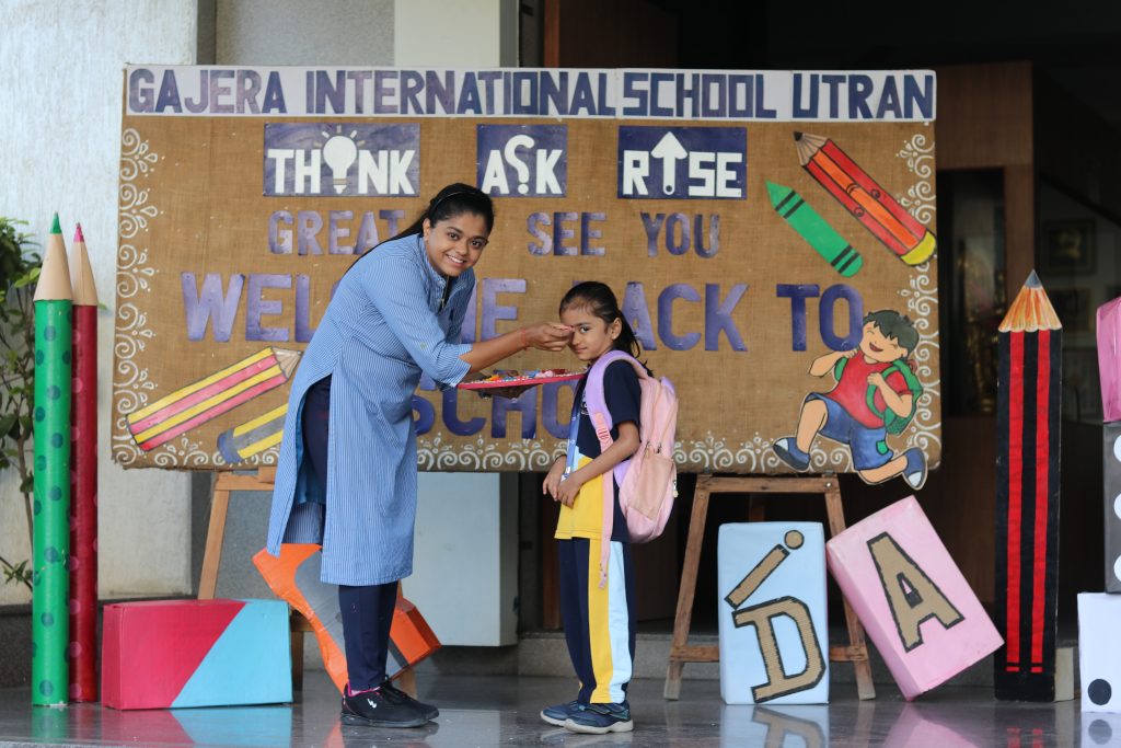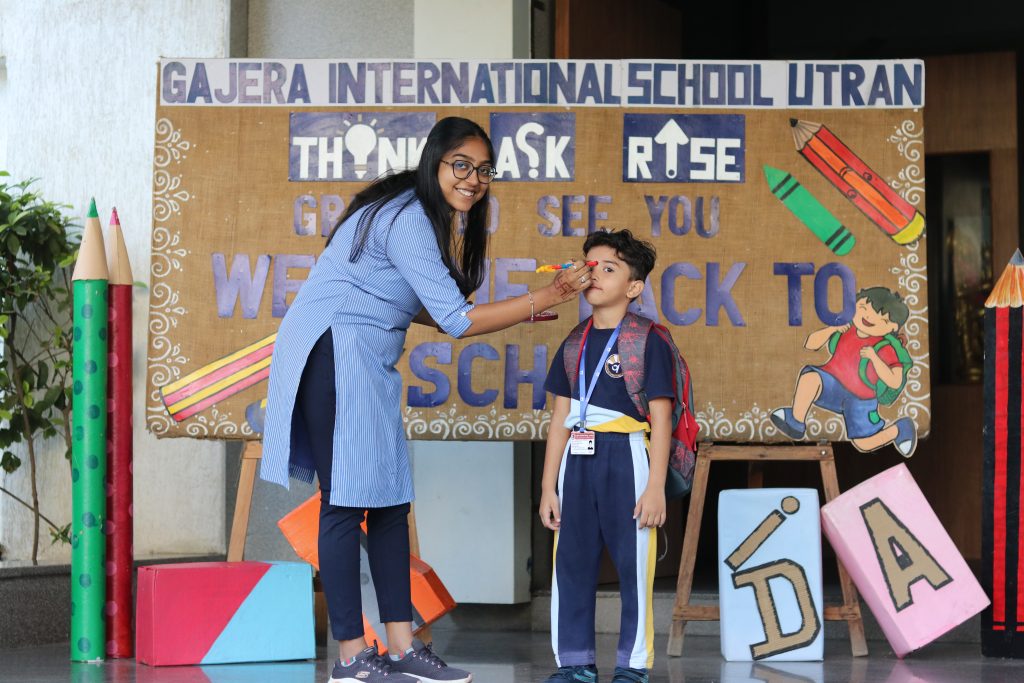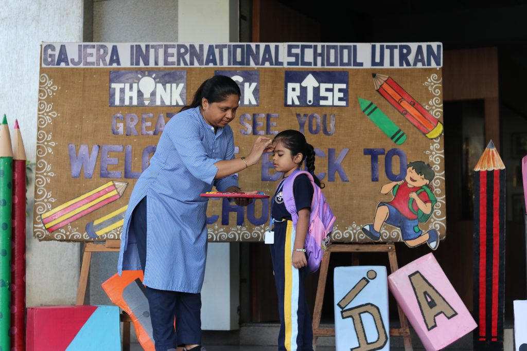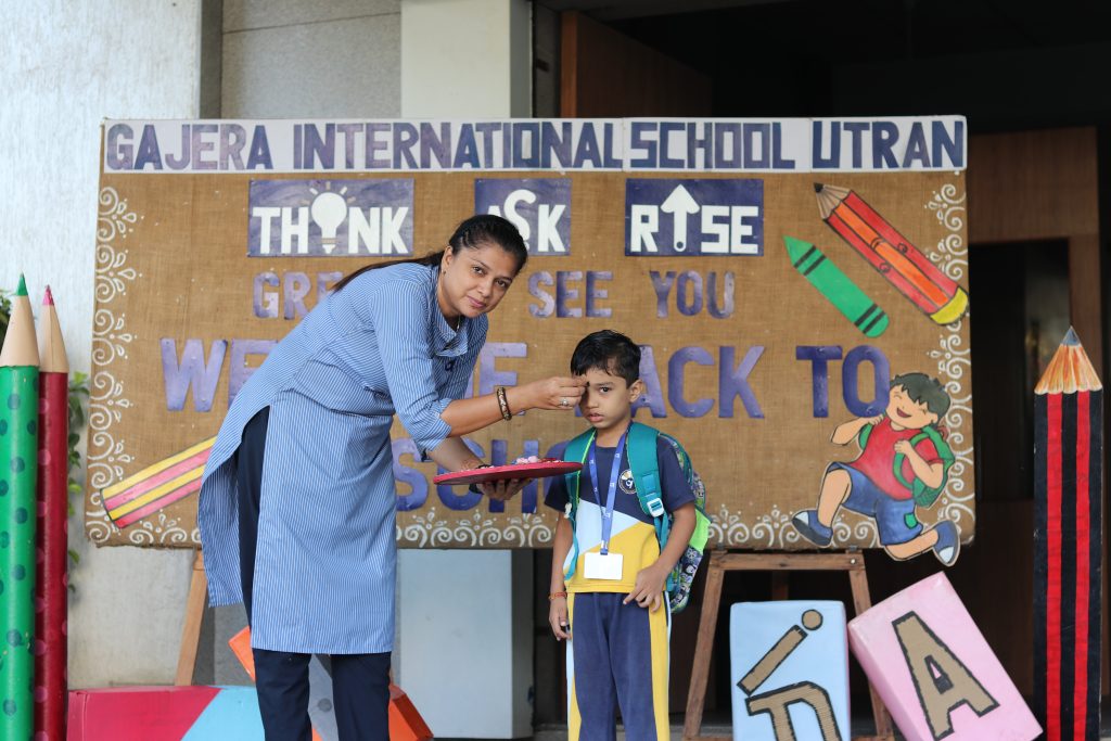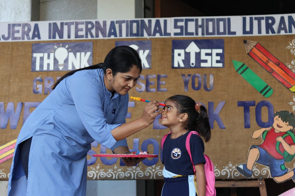To welcome our young learners, each student was greeted with a traditional tilak, symbolizing blessings and good fortune for a fresh start. The joy on their faces reflected the festive spirit that still lingered in the air.