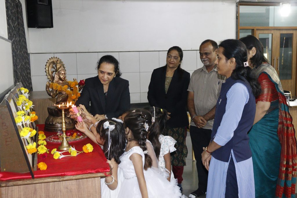 The ceremony began with the solemn lighting of the lamp, setting the tone for the inspiring event that followed. The Principal delivered a warm welcome speech, greeting esteemed guests and emphasizing the importance of leadership and responsibility.