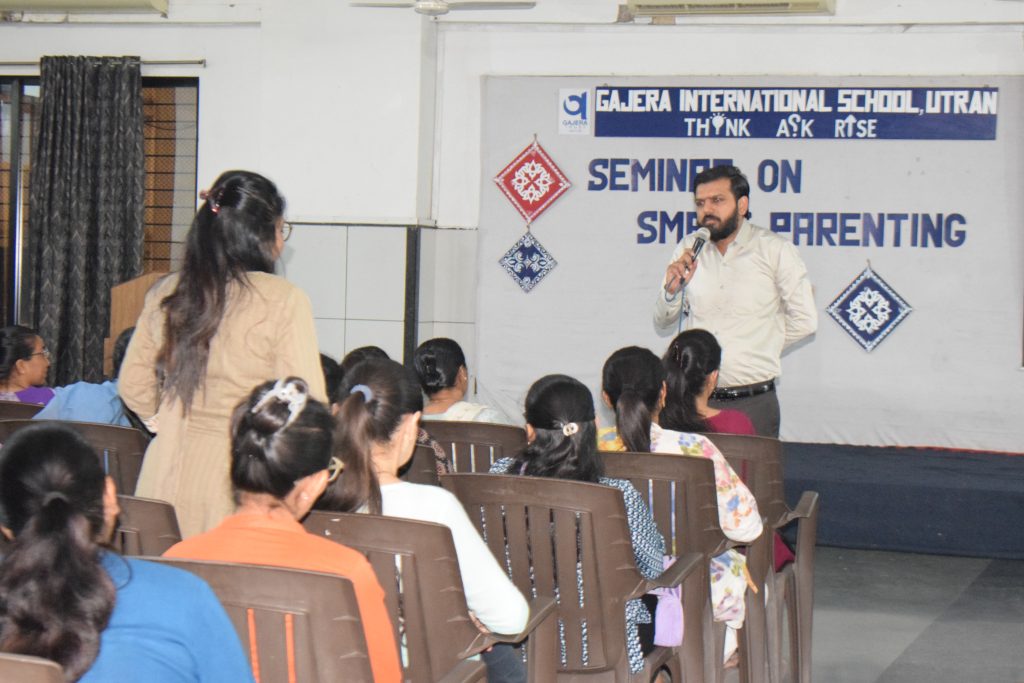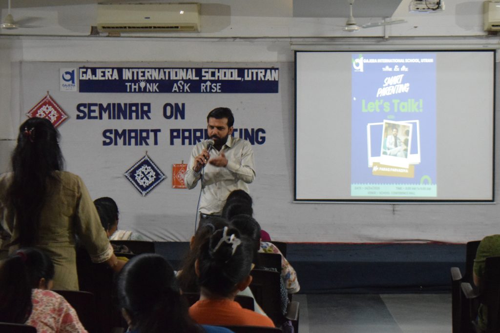 Gajera International School, Utran recently organized an insightful session on Smart Parenting for the parents of Grades 1 to 5. The session aimed to strengthen the bond between parents and children while equipping parents with practical strategies to navigate the challenges of modern-day parenting.