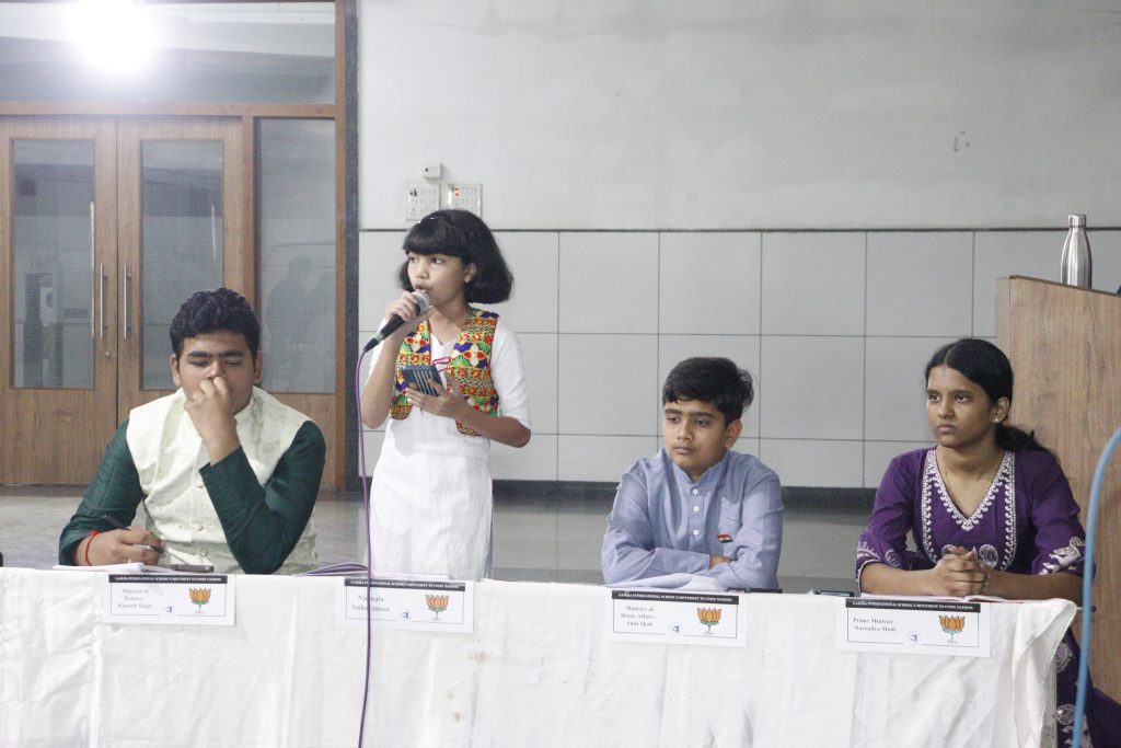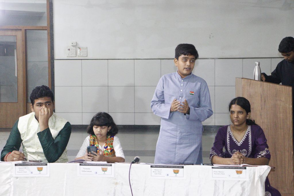 The simulated parliamentary session brought the atmosphere of a real legislature into the school premises. Students took on various parliamentary roles such as the Speaker, Prime Minister, Ministers, Opposition Members, and independent representatives. With remarkable enthusiasm and confidence, they presented debates on selected issues, raised questions, passed resolutions, and showcased how democratic discussions help shape policies for the nation.