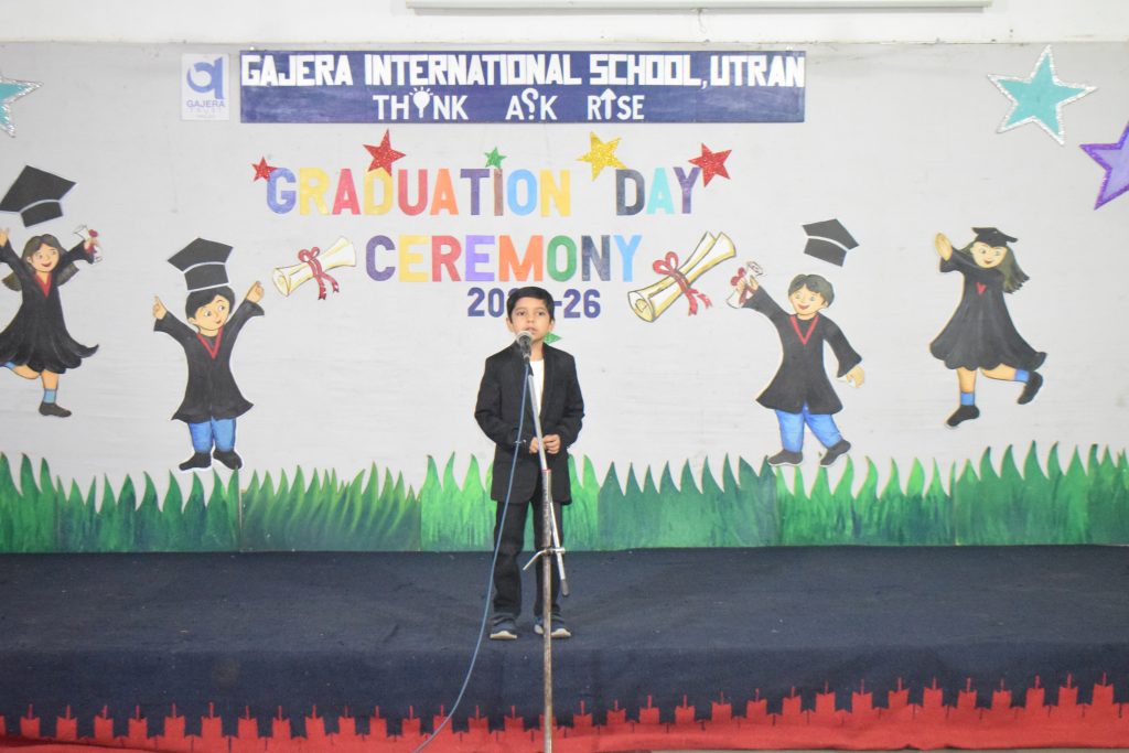 A heartfelt welcome to the young graduates was extended by the Grade 1 teacher and a Grade 1 student, who encouraged them as they prepare to begin a new chapter of their learning journey. The highlight of the day was the felicitation of the Balvatika students with Graduation Certificates, marking a proud milestone in their early education.The ceremony was a beautiful blend of emotions, pride, and celebration — a memorable day for students, parents, and teachers alike, as our little learners took their first big step toward a bright future.