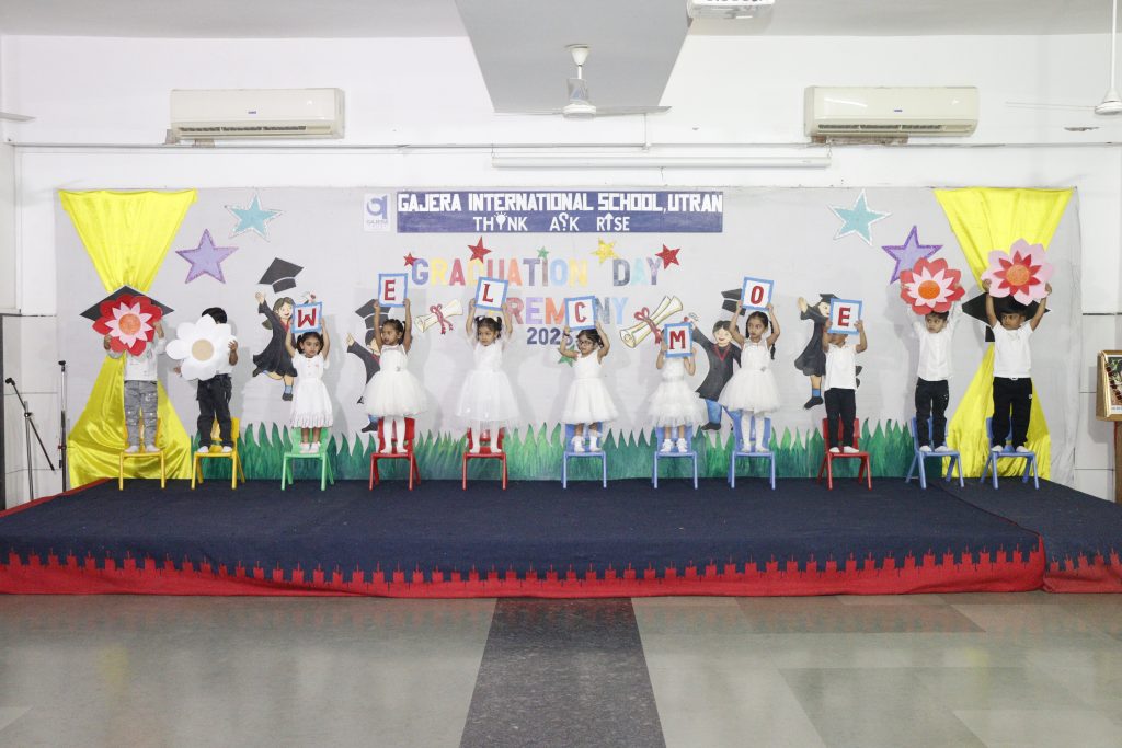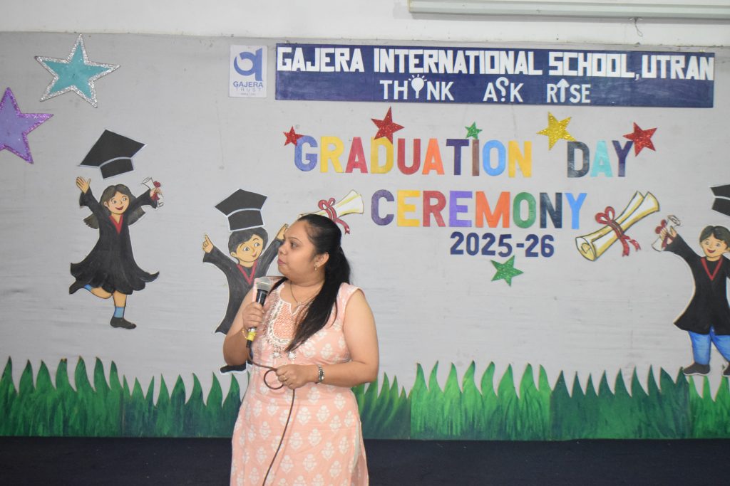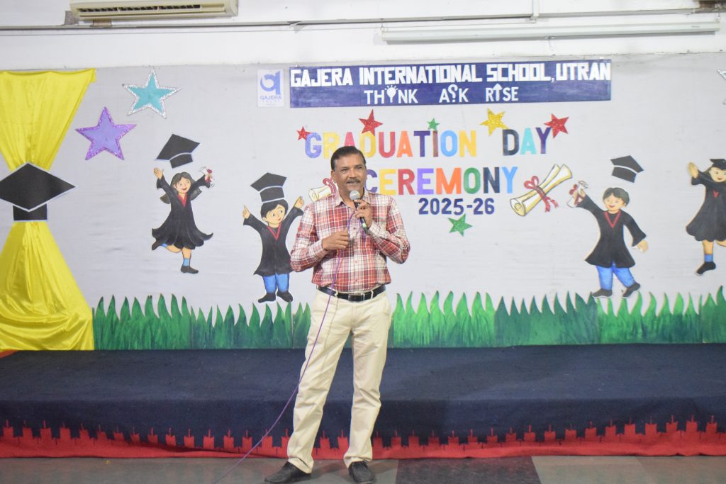 The program commenced with the auspicious lamp-lighting ceremony, symbolizing knowledge and new beginnings, followed by a warm welcome address by our Principal. Our distinguished guests were then felicitated as a a token of gratitude for their gracious presence. Dr. Pravin Savani and our Academic Director, Shri Jayesh Patel, also addressed the parents, sharing their valuable thoughts and encouraging words about nurturing young learners at this important stage of their educational journey.
