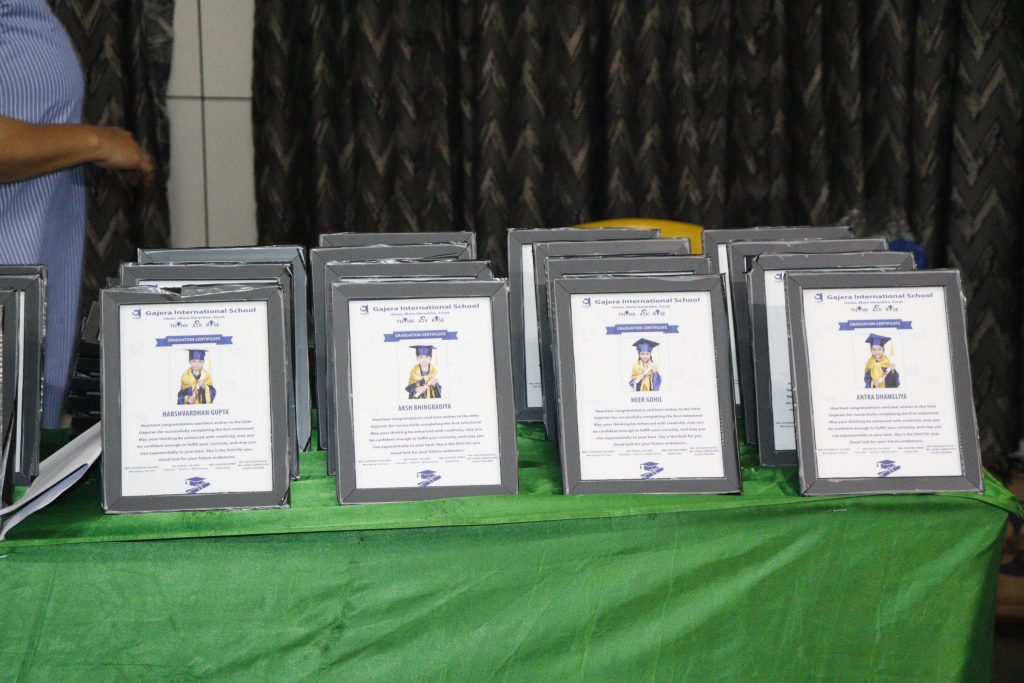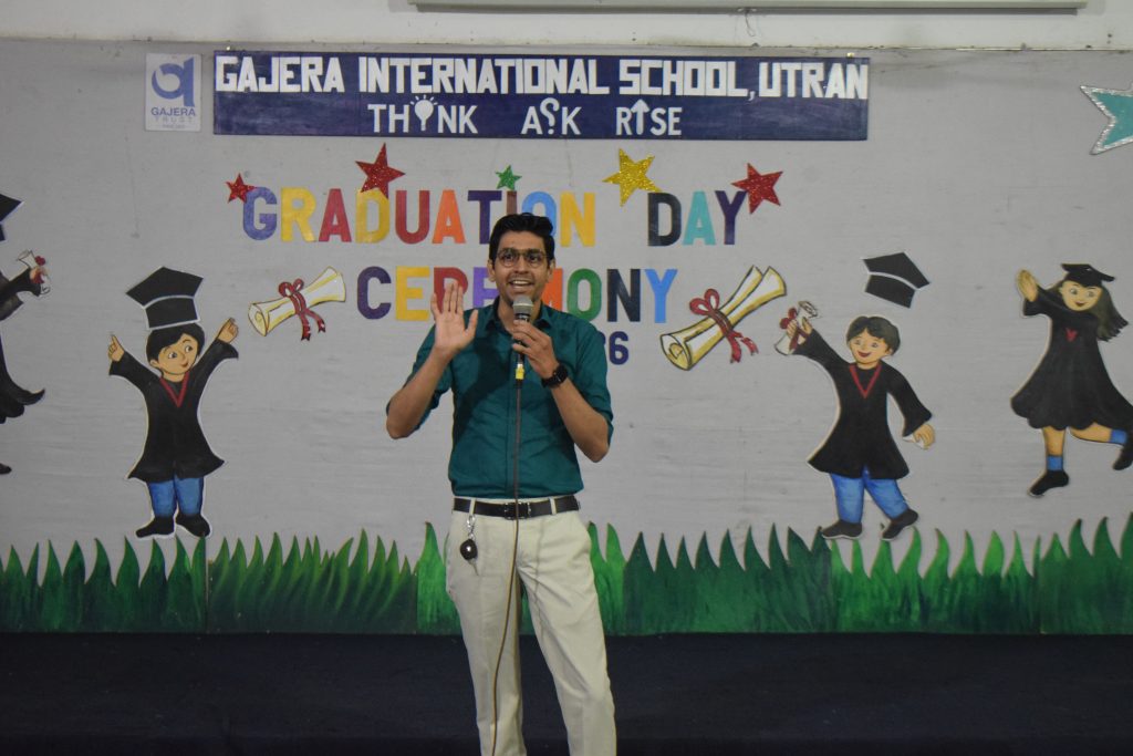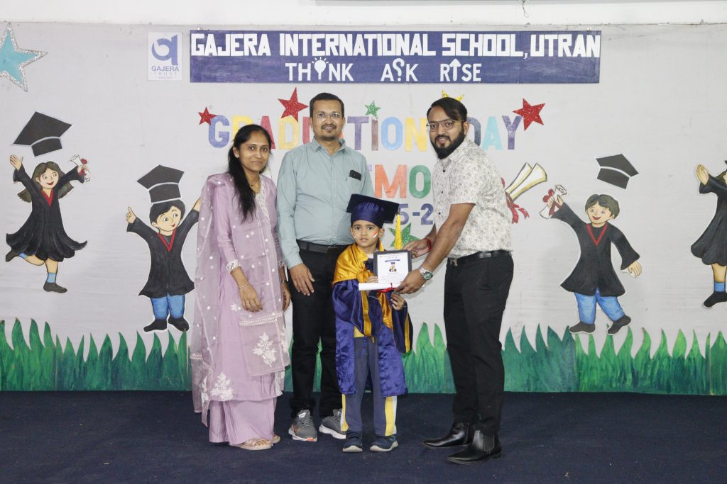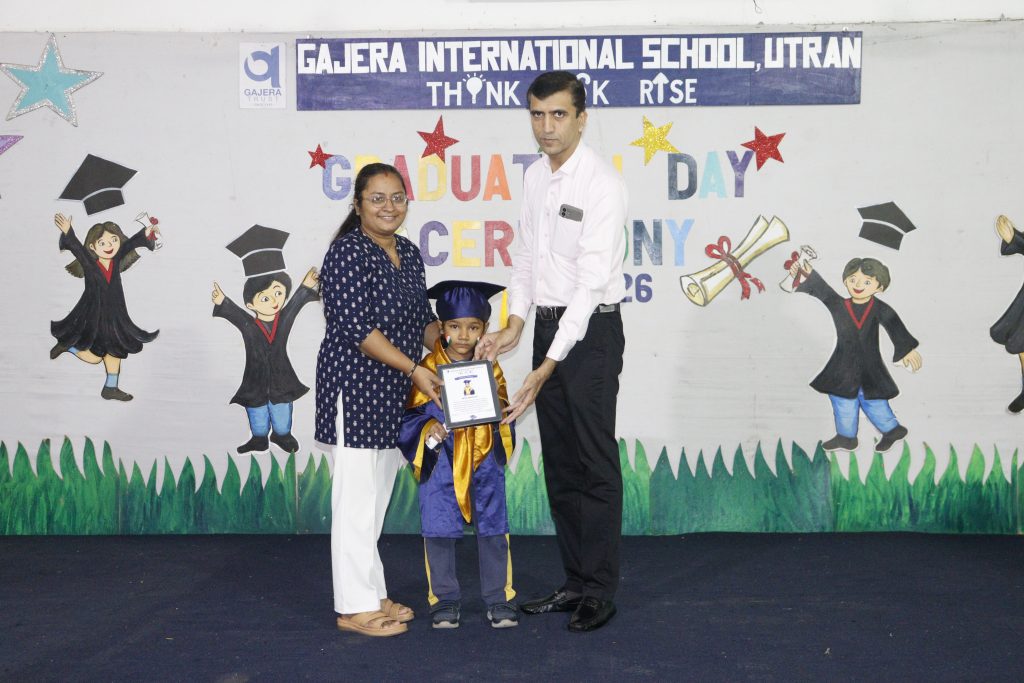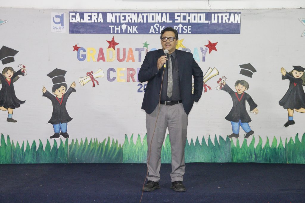 Our school joyfully celebrated the Graduation Day Ceremony for our Balvatika students, who are all set to step into Grade 1 in the coming academic year. The occasion was graced by our esteemed guests, Dr. Pravin Savani and Mr. Hardik Patel, Director of Papa Pagli Kids Club, along with our Academic Director, Shri Jayesh Patel, and the proud parents of our young graduates.